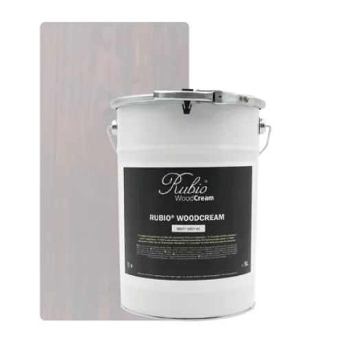 Rubio WoodCream geeft houten oppervlakken een semi-transparante, vergrijsde of dekkende look en is verkrijgbaar in 3 kleurencollecties: The Grey Collection, The Traditional Collection en The Scandinavian Collection. Er is ook een transparante versie (#0) beschikbaar. Hoewel deze versie geen UV-filter bevat, laat het hout op natuurlijke wijze vergrijzen, en wordt het beschermd en waterafstotend gemaakt. Deze transparante versie zal reeds vergrijsd hout eveneens beschermen.