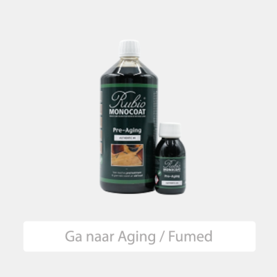 Rubio Monocoat Pre Aging Speciaal voor wie een “gerookt” (fumé) of vergrijsd / verouderde look wil, zoals je vaak bij oude balken ziet. Dit reactieve product laat het hout donkerder en grijzer reageren (vooral bij eik rijk aan tannines). Wordt daarna afgewerkt met Oil Plus 2C. Alleen voor binnen, geeft een heel authentiek verouderd effect.