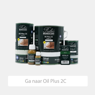 Rubio Monocoat Oil Plus 2C De bekendste en meest verkochte Rubio-olie voor binnenshuis (vloeren, meubels, trappen, werkbladen…). Eén laag is genoeg, het dringt diep in het hout en geeft een moleculaire binding. Beschermt én kleurt in één keer. Verkrijgbaar in meer dan 40 standaardkleuren + onbeperkt eigen kleuren op mengmachine. Matte, natuurlijke uitstraling, geen film of glanslaag. Zeer slijt- en watervast.