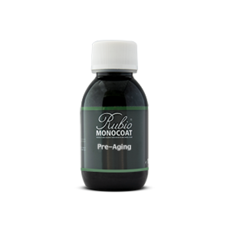 Rubio Monocoat Pre-Aging is een niet-reactieve voorbehandeling van hoge kwaliteit, beschikbaar in 10 standaard kleuren. Het kleurengamma gaat enerzijds van een lichtere naar donkere gerookte look, waarbij de kleuren onderling mengbaar zijn en ook afgelengd kunnen worden tot de variant die de klant wenst. Anderzijds is er een gamma vergrijsde kleuren die ook onderling mengbaar zijn. Het resultaat geeft een diepe kleuring met subtiele accenten.