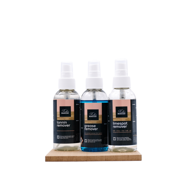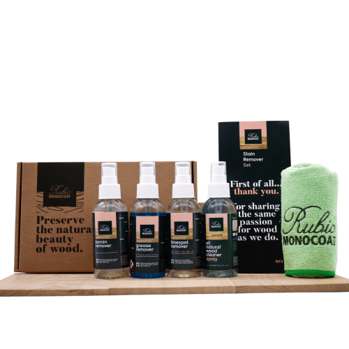 Op zoek naar een echte problem solver voor je vlek op geolied binnenhout? Voilà, je hebt 'm gevonden! Dankzij de voorbereidende spray en de drie removers in de set, kan je elke vlek verwijderen. De All Natural Wood Cleaner Spray zorgt bovendien voor een zelfreinigend effect en een langdurige na-reiniging