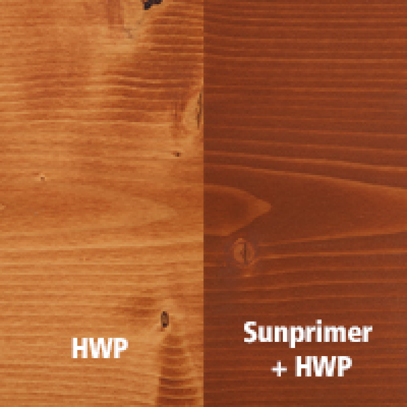 RMC Sunprimer HWP - die steeds wordt aangebracht in dezelfde kleur als de RMC Hybrid Wood Protector - garandeert een diepe penetratie van de kleurpigmenten en creëert op die manier een nog intensere kleur.